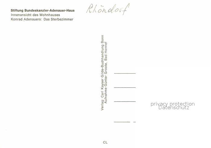 72758487 Rhoendorf Konrad Adenauer Sterbezimmer postalisch nicht gelaufen Erhaltung siehe scans [KathaD81] KatCode: 11110005382008