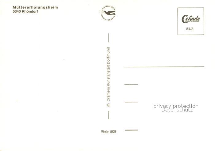 73672476 Rhoendorf Muettererholungsheim postalisch nicht gelaufen Erhaltung siehe scans [FriedD77] KatCode: 11110005382008