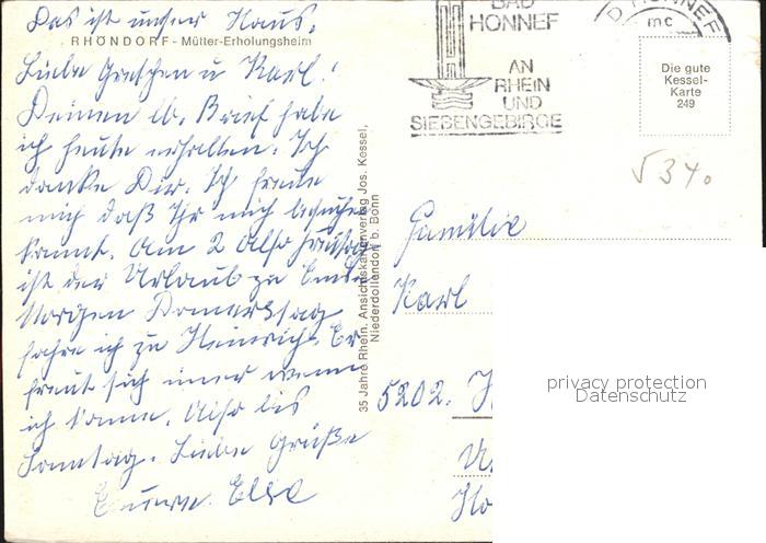 72478116 alte Postkarte Rhoendorf Muttererholungsheim postalisch gelaufen Erhaltung siehe scans KatCode: 11110005382008
