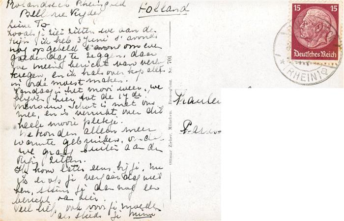 73948928 alte Postkarte Rhoendorf Panorama Blick gegen Drachenfels und Petersberg postalisch gelaufen Erhaltung siehe scans [FriedD77] KatCode: 11110005382008