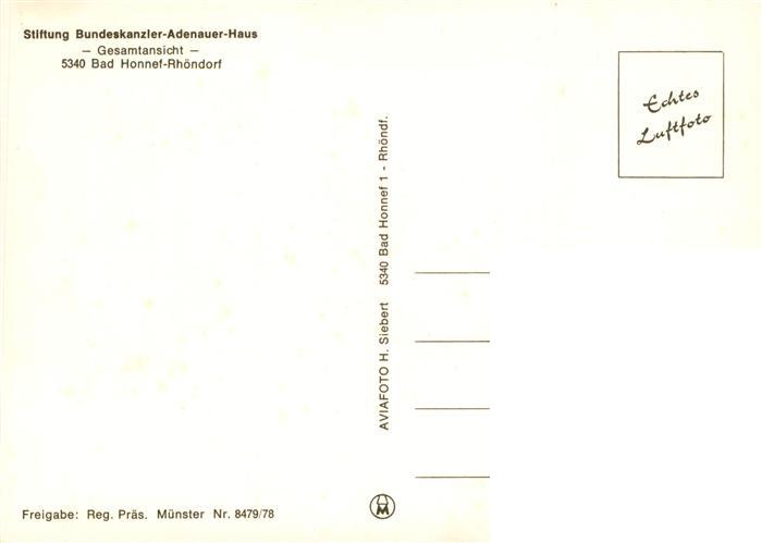 73882548 Rhoendorf Stiftung Bundeskanzler Adenauer Haus Fliegeraufnahme postalisch nicht gelaufen Erhaltung siehe scans [FriedD77] KatCode: 11110005382008