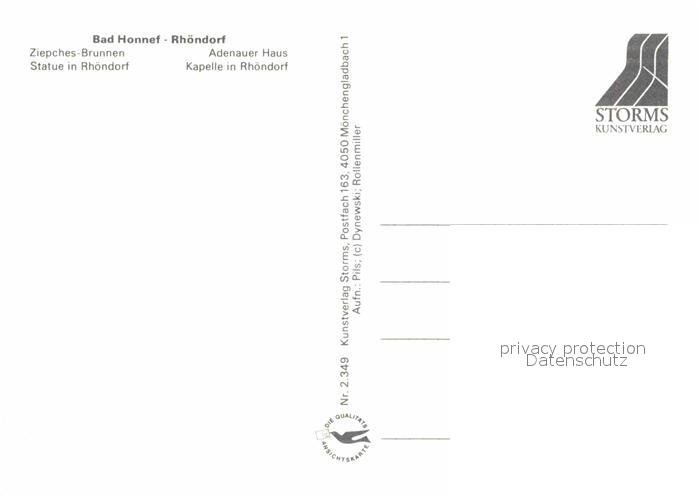 72746126 Rhoendorf Ziepches-Brunnen Adenauer-Haus Statue Kapelle postalisch nicht gelaufen Erhaltung siehe scans [LiesaD40] KatCode: 11110005382008