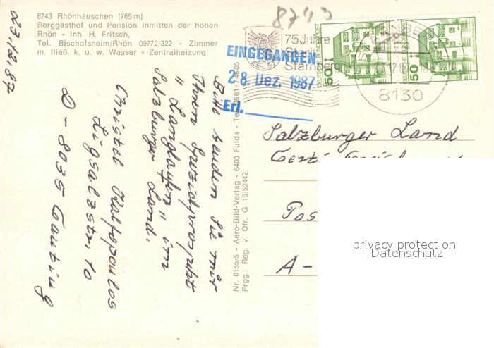 73684526 alte Postkarte Rhoenhaeuschen Berggasthof Pension Fliegeraufnahme postalisch gelaufen Erhaltung siehe scans [FriedD77] KatCode: 11110009673117