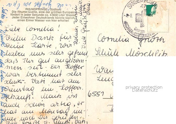 73217833 alte Postkarte Rhumspringe Rhume Quelle postalisch gelaufen Erhaltung siehe scans [KathaD81] KatCode: 11110003152019