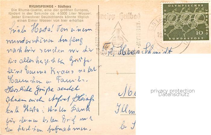 73809894 alte Postkarte Rhumspringe Rhume-Quelle postalisch gelaufen Erhaltung siehe scans [FriedD77] KatCode: 11110003152019
