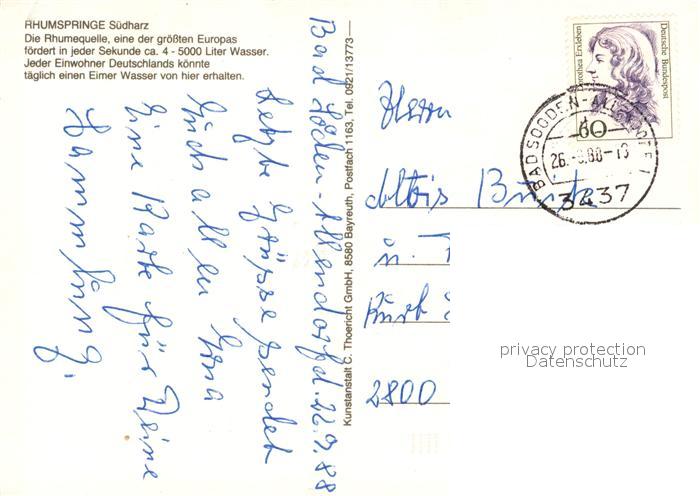 73100434 alte Postkarte Rhumspringe Rhumequelle postalisch gelaufen Erhaltung siehe scans [NatalD47] KatCode: 11110003152019