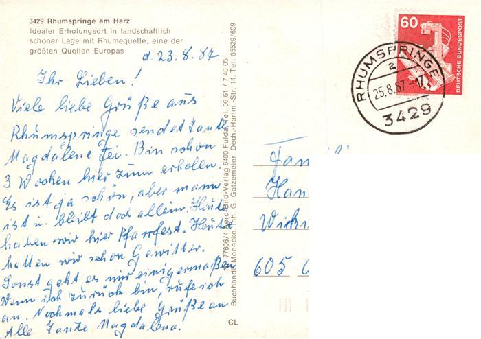 73947157 alte Postkarte Rhumspringe Teilansichten Erholungsort Brunnen Rhumquelle postalisch gelaufen Erhaltung siehe scans [FriedD77] KatCode: 11110003152019