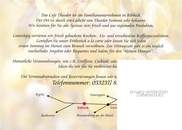 73614245 Ribbeck Nauen Cafe Theodor Gaststube Terrasse postalisch nicht gelaufen Werbekarte (keine Postkarte) Erhaltung siehe scans [WerneD78] KatCode: 11110012063208