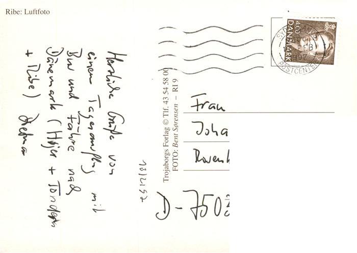 old postcard Ribe DK Fliegeraufnahme postalisch gelaufen Erhaltung siehe scans [WerneD78]