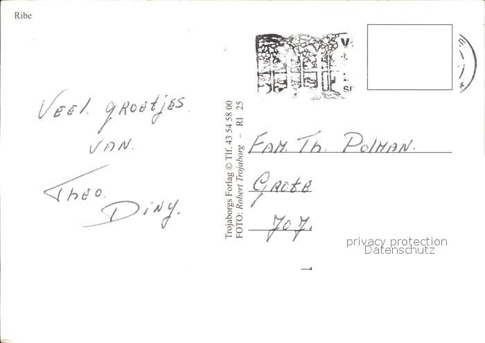 old postcard Ribe Kirche Turm postalisch gelaufen Erhaltung siehe scans