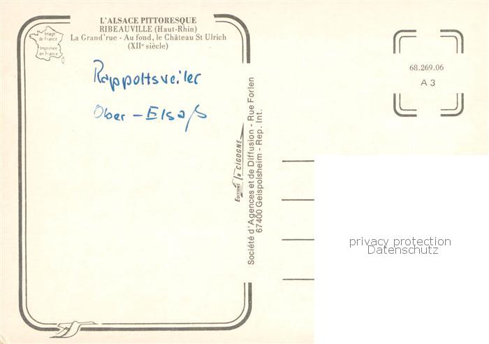 13767710 Ribeauville Haut Rhin Alsace 68 La Grand rue Le Chateau St Ulrich postalisch nicht gelaufen Erhaltung siehe scans [WerneD78] Wern Katcode 11170068568269