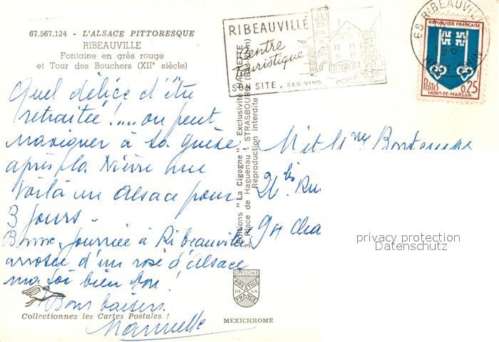 13582032 Ribeauville Haut Rhin Elsass Fontaine en grès rouge Tour des Bouchers XIIe siècle postalisch gelaufen Erhaltung siehe scans [FriedD77] carte postale Frie Katcode 11170068568269