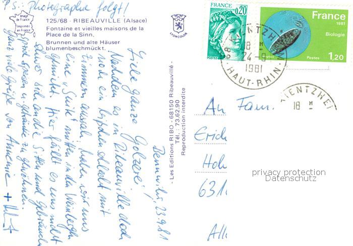 13226964 carte postale Ribeauville Haut Rhin Elsass Fontaine et vieilles maisons de la Place de la Sinn postalisch gelaufen Erhaltung siehe scans [FriedD77] KatCode: 11170068568269