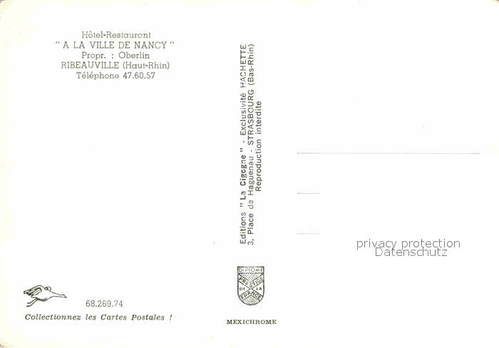 12845134 Ribeauville Haut Rhin Elsass Hotel Ville de Nancy postalisch nicht gelaufen Erhaltung siehe scans [PaolaD17] KatCode: 11170068568269