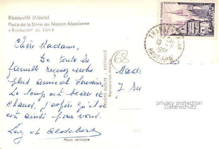 13218409 carte postale Ribeauville Haut Rhin Elsass Place de la Sinne Maison Alsacienne Restaurant du Lion postalisch gelaufen Erhaltung siehe scans [FriedD77] KatCode: 11170068568269