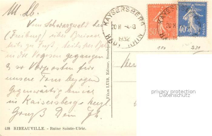13300437 carte postale Ribeauville Haut Rhin Elsass Ruine Sainte Ulric postalisch gelaufen Erhaltung siehe scans [FriedD77] KatCode: 11170068568269