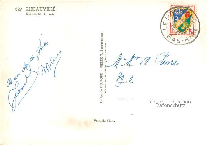 13617536 Ribeauville Haut Rhin Elsass Ruines St Ulrich postalisch gelaufen Erhaltung siehe scans [WerneD78] carte postale Wern Katcode 11170068568269