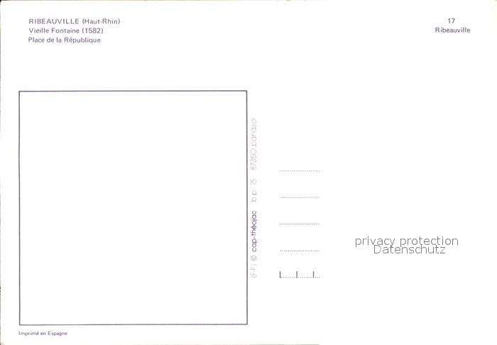 12921485 Ribeauville Haut Rhin Elsass Vieille Fontaine Place de la Republique postalisch nicht gelaufen Erhaltung siehe scans [WerneD48] KatCode: 11170068568269