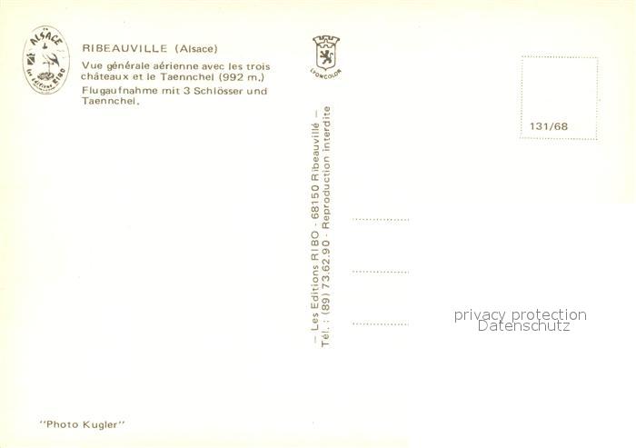 13246307 Ribeauville Haut Rhin Elsass Vue aérienne avec les trois chateaux et le Taennchel Schlösser KatCode 11170068568269