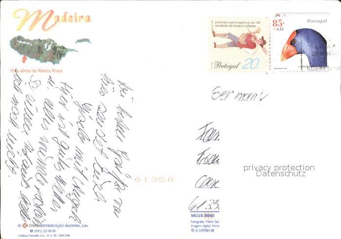 old postcard Ribeira Brava Fliegeraufnahme postalisch gelaufen Erhaltung siehe scans