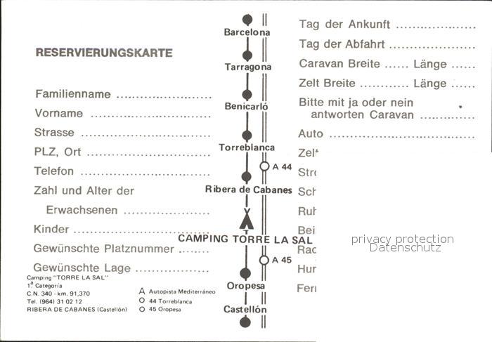 Ribera de Cabanes Camping Torre la sal postalisch nicht gelaufen Werbekarte (keine Postkarte) Erhaltung siehe scans