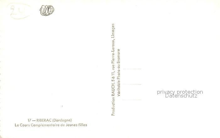 13547014 Riberac Cours Complémentaire des Jeunes Filles postalisch nicht gelaufen Erhaltung siehe scans [FriedD77] KatCode: 11170024324352