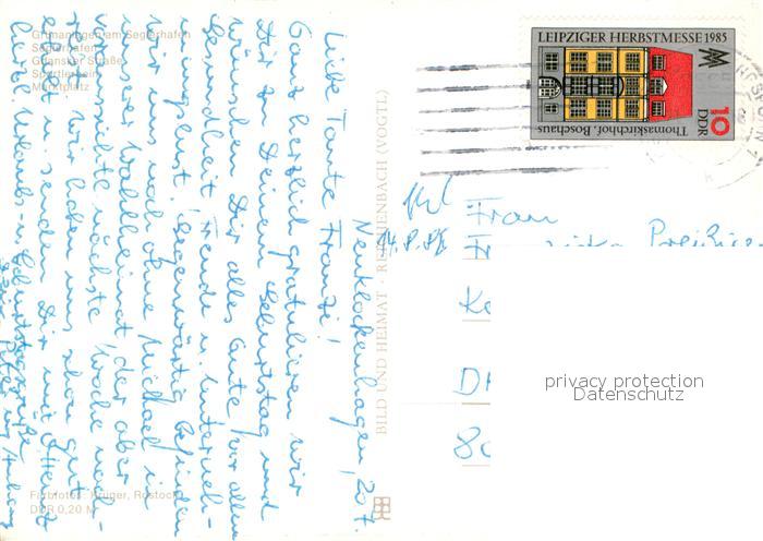 73653705 alte Postkarte Ribnitz-Damgarten Ostseebad Gruenanlagen am Seglerhafen Gdansker Strasse Sportlerheim Marktplatz postalisch gelaufen Erhaltung siehe scans [FriedD77] KatCode: 11110013057074