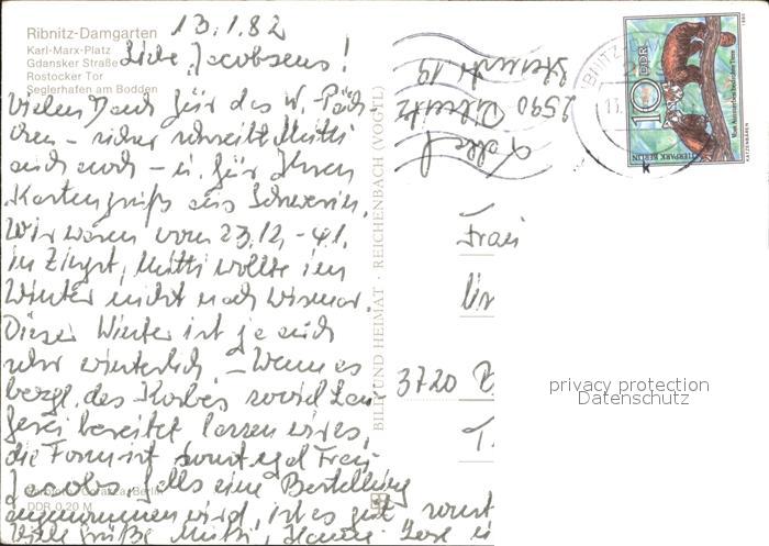 72015774 alte Postkarte Ribnitz-Damgarten Ostseebad Karl Marx Platz Rostocker Tor postalisch gelaufen Erhaltung siehe scans KatCode: 11110013057074