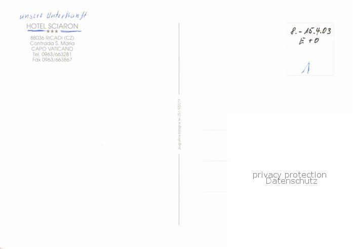 Ricadi Hotel Sciaron Capo Vaticano Halbinsel Meerblick postalisch nicht gelaufen Erhaltung siehe scans [FriedD77]