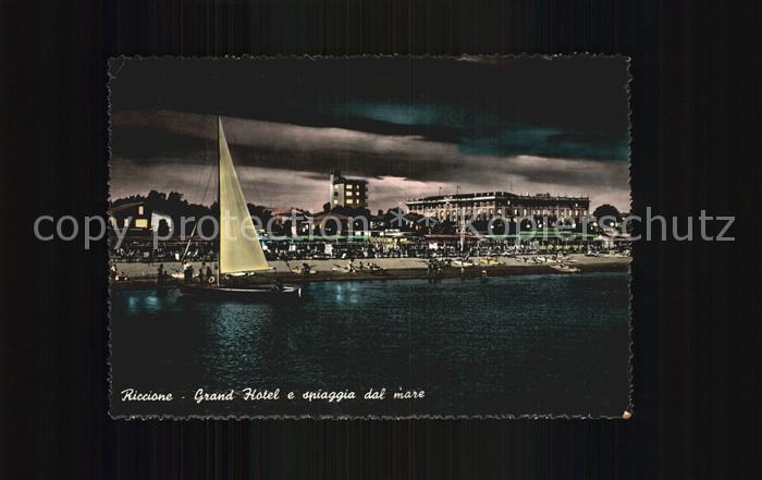 old postcard Riccione Grand Hotel e spiaggia dal mare postalisch gelaufen Erhaltung siehe scans