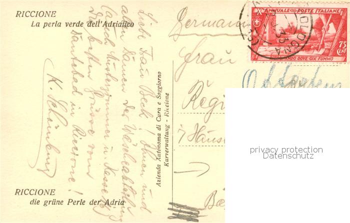 old postcard Riccione Rimini IT Am Strand m. Booten postalisch gelaufen Erhaltung siehe scans [LiesaD40]