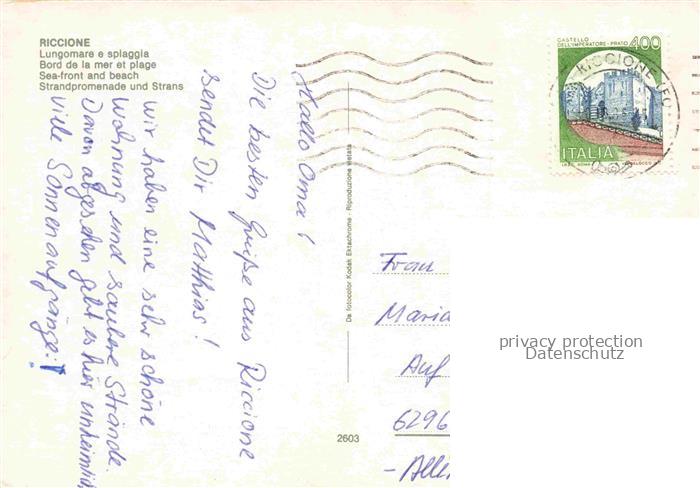74075357 old postcard RICCIONE RIMINI IT Bord de la mer et plage postalisch gelaufen Erhaltung siehe scans [WerneD78] KatCode: 11240