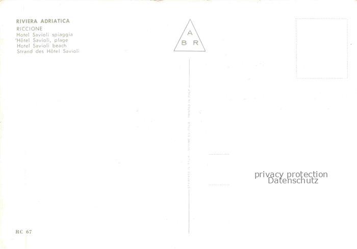 74084779 RICCIONE RIMINI IT Hotel Savioli Spiaggia postalisch nicht gelaufen Erhaltung siehe scans [WerneD78] KatCode: 11240