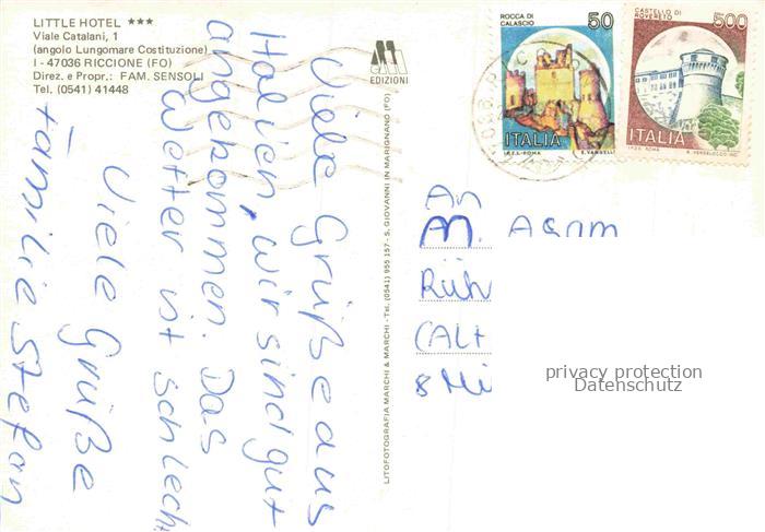 74085053 old postcard RICCIONE RIMINI IT Little Hotel Terrasse Foyer postalisch gelaufen Erhaltung siehe scans [WerneD78] KatCode: 11240