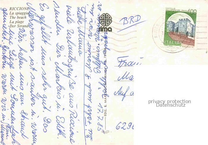 74075356 old postcard RICCIONE RIMINI IT Strand postalisch gelaufen Erhaltung siehe scans [WerneD78] KatCode: 11240