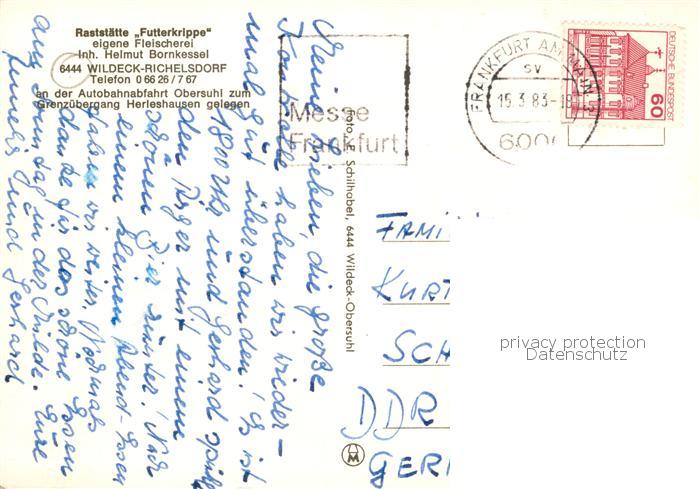 73863281 alte Postkarte Richelsdorf Raststaette Futterkrippe Panorama postalisch gelaufen Erhaltung siehe scans [FriedD77] KatCode: 11110006632020