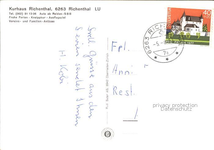 11649029 alte Postkarte Richenthal Kurhaus postalisch gelaufen Erhaltung siehe scans KatCode: 11470120400030