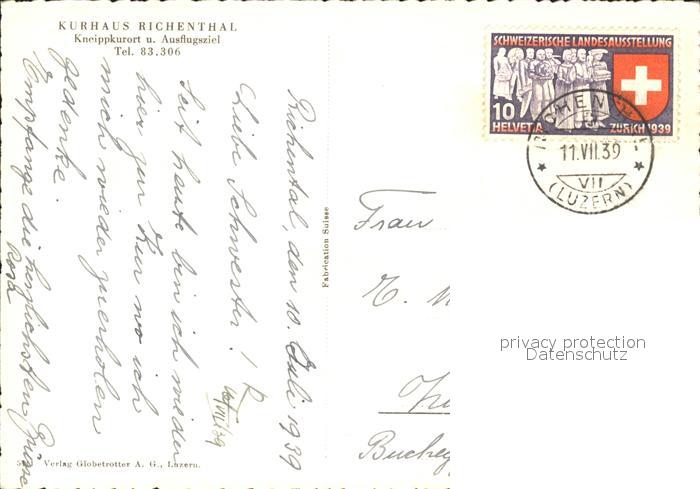 11648423 alte Postkarte Richenthal Kurhaus Richenthal postalisch gelaufen Erhaltung siehe scans KatCode: 11470120400030