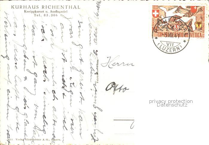 11648243 alte Postkarte Richenthal Kurhaus Richenthal postalisch gelaufen Erhaltung siehe scans KatCode: 11470120400030