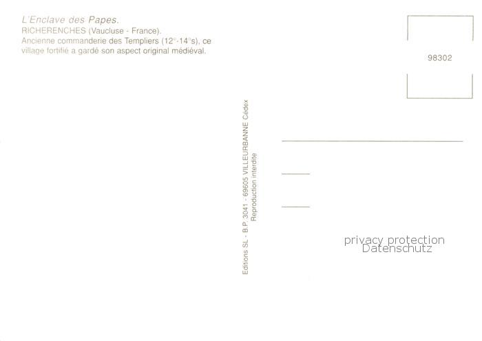 13791103 Richerenches 84 Vaucluse Enclave des Papes village fortifié postalisch nicht gelaufen Erhaltung siehe scans [FriedD77] Frie Katcode 11170084284097