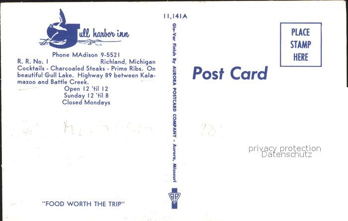 71859336 Richland Michigan Gull Harbor Inn Restaurant postalisch nicht gelaufen Erhaltung siehe scans KatCode: 14140240000000