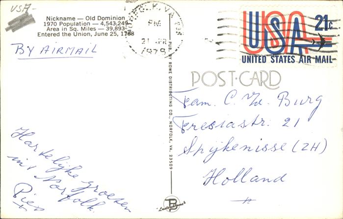 11491538 old postcard Richmond Virginia — postalisch gelaufen Erhaltung siehe scans KatCode: 14140490000000
