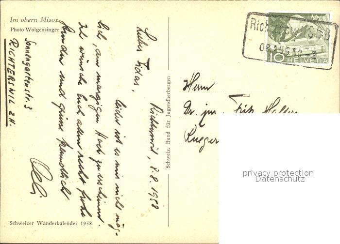 11637602 alte Postkarte Richterswil Fliegeraufnahme im obern Misox postalisch gelaufen Erhaltung siehe scans KatCode: 11470260890336