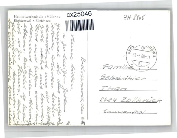 10753278 alte Postkarte Richterswil Schule Muelene Fliegeraufnahme postalisch gelaufen KatCode: 11470260890336