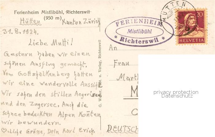 13821731 alte Postkarte Richterswil ZH Ferienheim Mistlibuehl postalisch gelaufen Erhaltung siehe scans [WerneD78] KatCode: 11470260890336