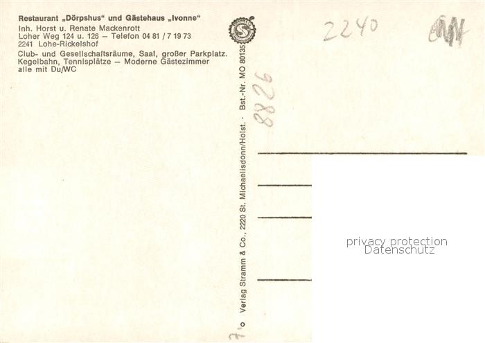 73641858 Rickelshof Lohe Gaestehaus Ivonne Restaurant Doerpshus Gaststube Zimmer postalisch nicht gelaufen Erhaltung siehe scans [WerneD78] KatCode: 11110001051069