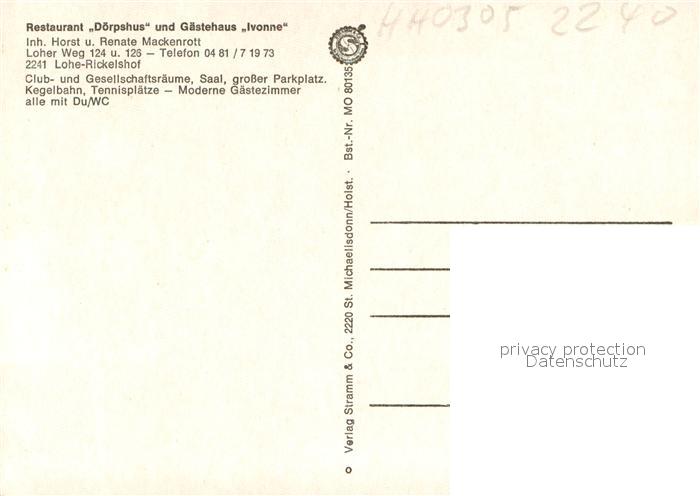 73642747 Rickelshof Lohe Restaurant Doerpshus Gaestehaus Ivonne postalisch nicht gelaufen Erhaltung siehe scans [FriedD77] KatCode: 11110001051069