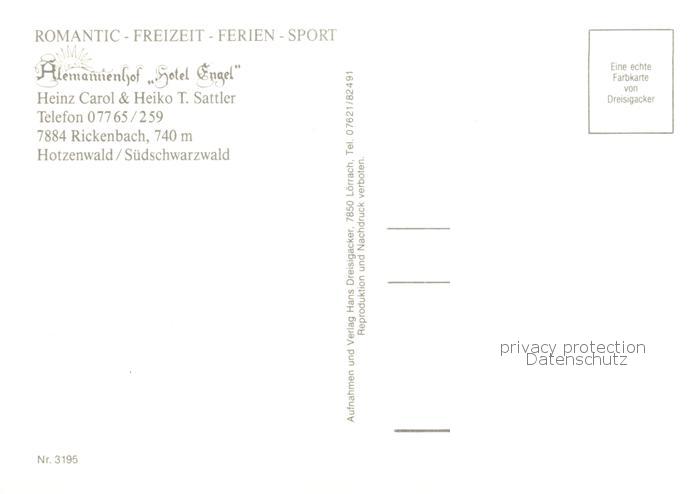 73791741 Rickenbach Hotzenwald Alemannenhof Hotel Engel Gaststube Grillplatz Whirlpool postalisch nicht gelaufen Erhaltung siehe scans [WerneD78] KatCode: 11110008337090