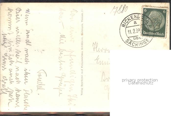 71683739 alte Postkarte Rickenbach Hotzenwald Gasthaus zum Hotzenhof postalisch gelaufen Erhaltung siehe scans KatCode: 11110008337090