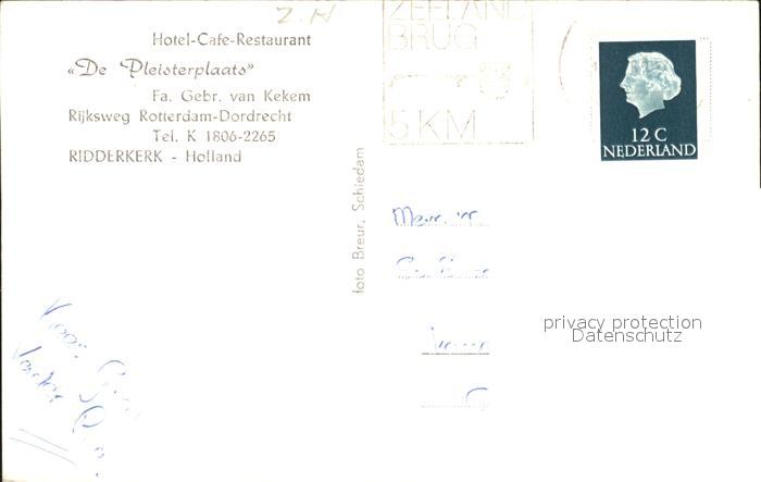 old postcard Ridderkerk Hotel Cafe Restaurant De Pleisterplaats postalisch gelaufen Erhaltung siehe scans